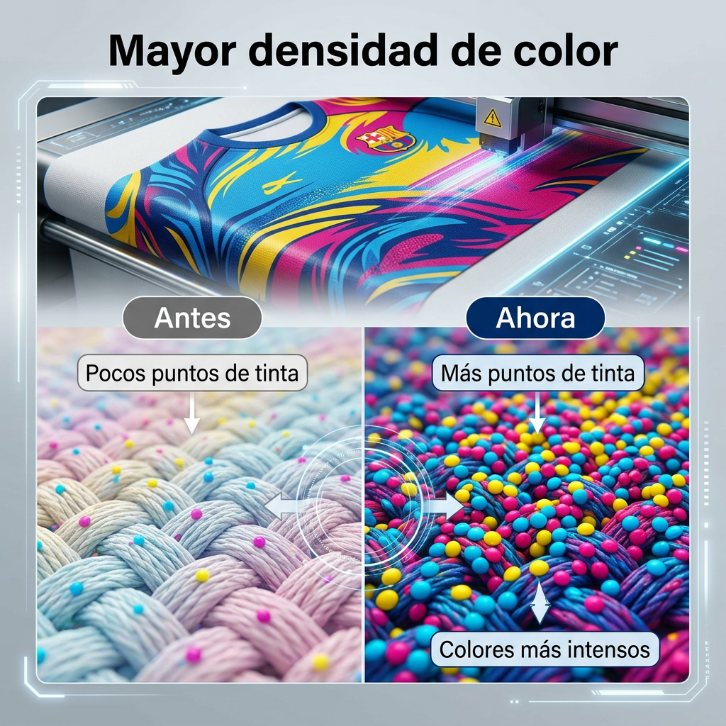 Estas características lo convierten en una opción atractiva para fabricantes de equipos y centros de producción que trabajan con impresión por sublimación, moda deportiva y textiles personalizados.