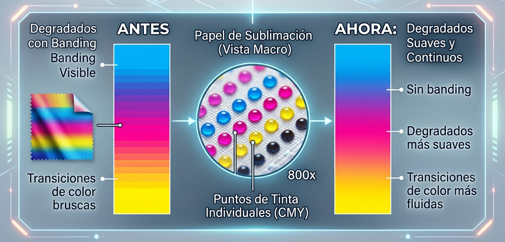 Especialmente perceptibles en imágenes fotográficas y diseños complejos, donde las transiciones de tono resultan más naturales y continuas.